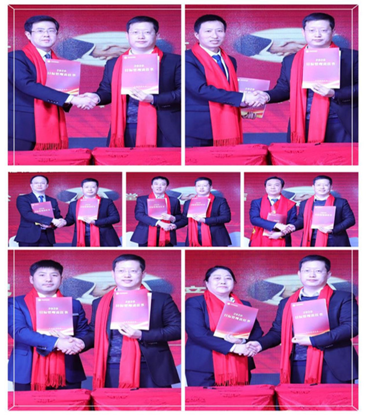 在介紹集團(tuán)組織框架和集團(tuán)、各子公司高管后,各位高管與郭雅磊總裁簽訂《目標(biāo)管理責(zé)任書》,部分單位的高管帶領(lǐng)管理團(tuán)隊(duì)進(jìn)行工作動員表態(tài),向集團(tuán)保證完成2020年工作任務(wù)。