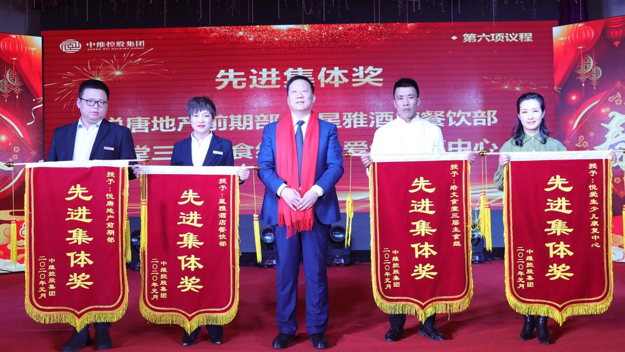 2020年1月18日,中維控股集團(tuán)舉行了以“恒心謀發(fā)展效益爭先、匠心鑄管理精益求精”為主題的2020年年會,集團(tuán)郭秀忠董事長、王文萍副董事長、郭雅維副董事長、郭雅磊總裁等領(lǐng)導(dǎo)出席。年會分為三部分:工作會議、迎新春聯(lián)歡會、年會晚宴。