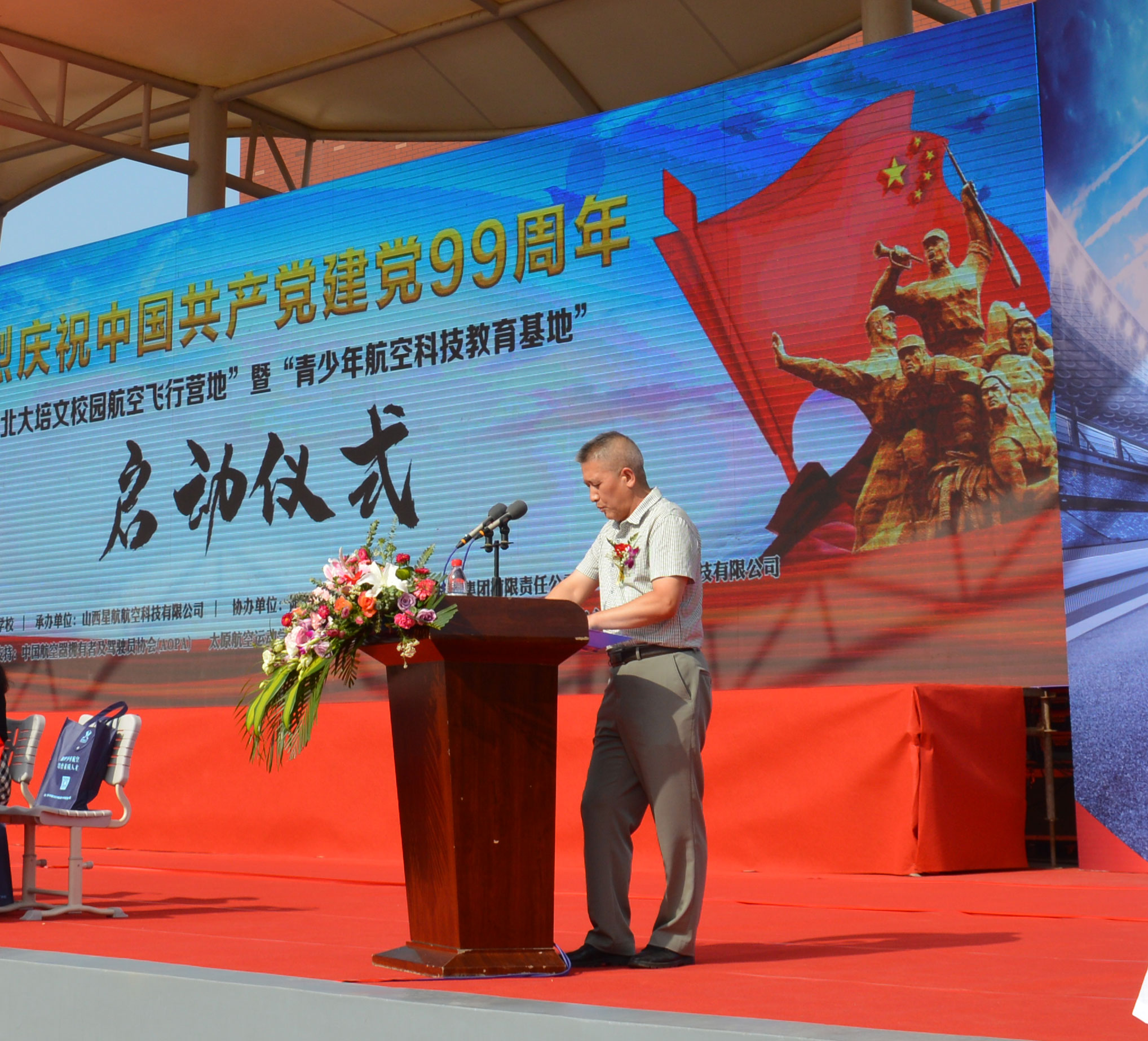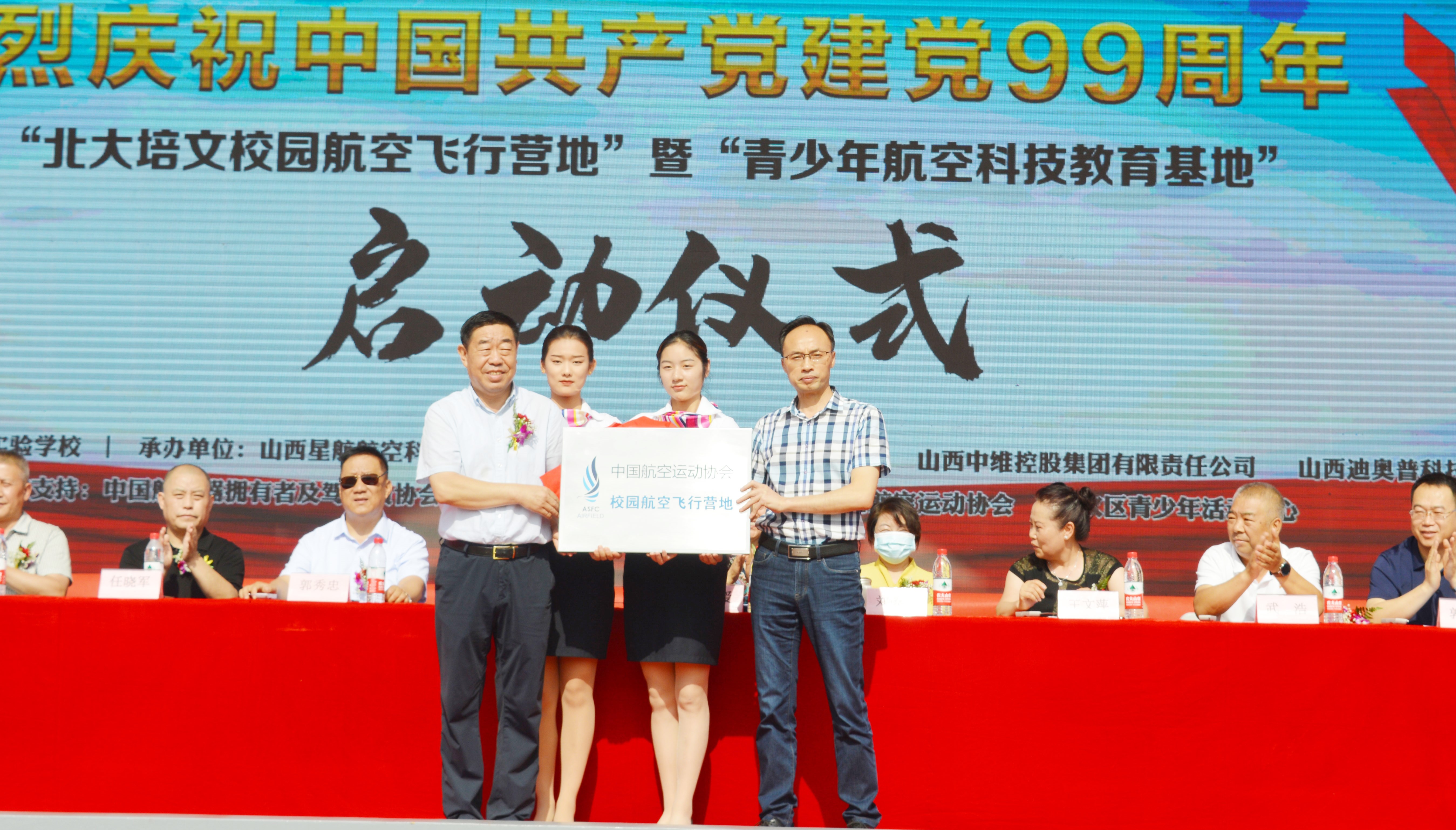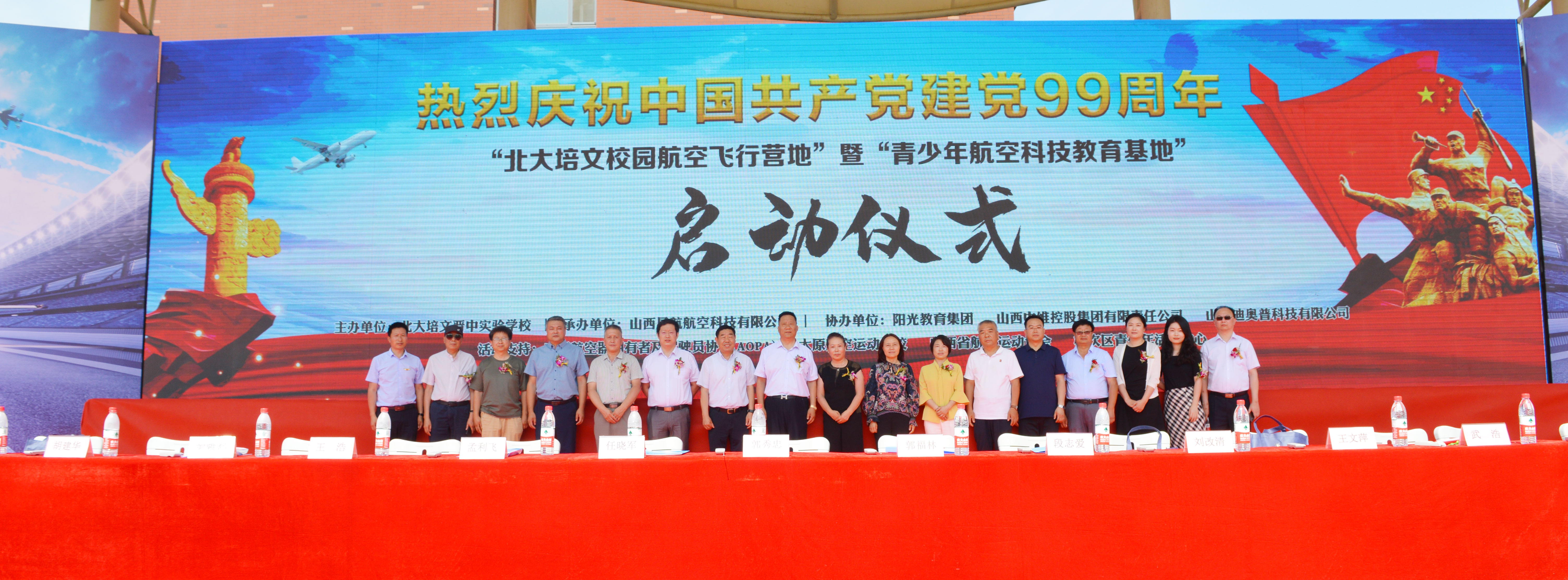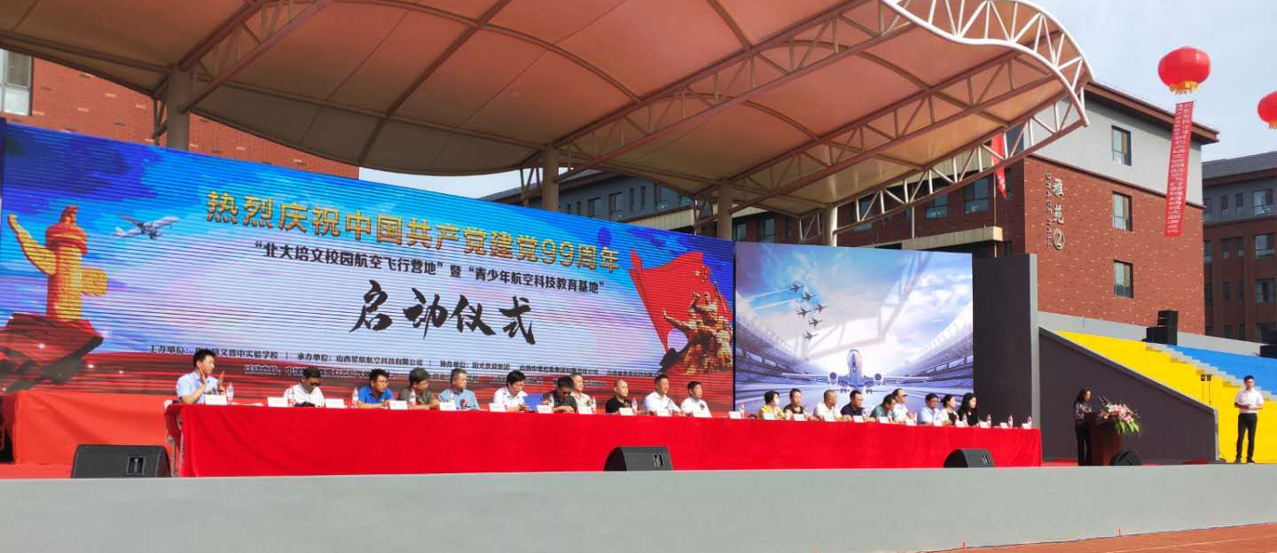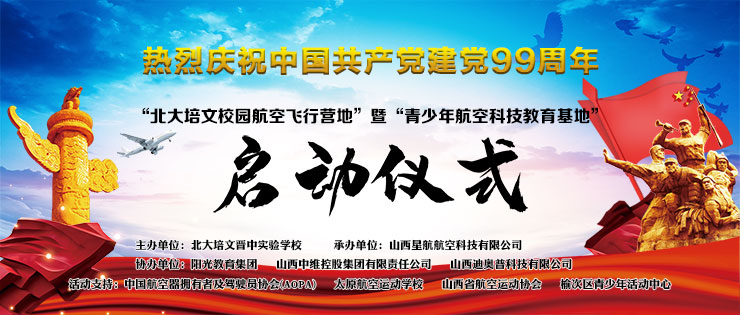 在中國共產(chǎn)黨誕辰99周年之際,為了進(jìn)一步培養(yǎng)青少年的航空愛國精神、全面推動山西省航空特色教育發(fā)展,實(shí)現(xiàn)省通用航空產(chǎn)業(yè)的全鏈接。北大培文晉中實(shí)驗(yàn)學(xué)校于2020年7月1日上午八點(diǎn)隆重舉行了“校園航空飛行營地”暨“青少年航空科技教育基地”啟動儀式。
