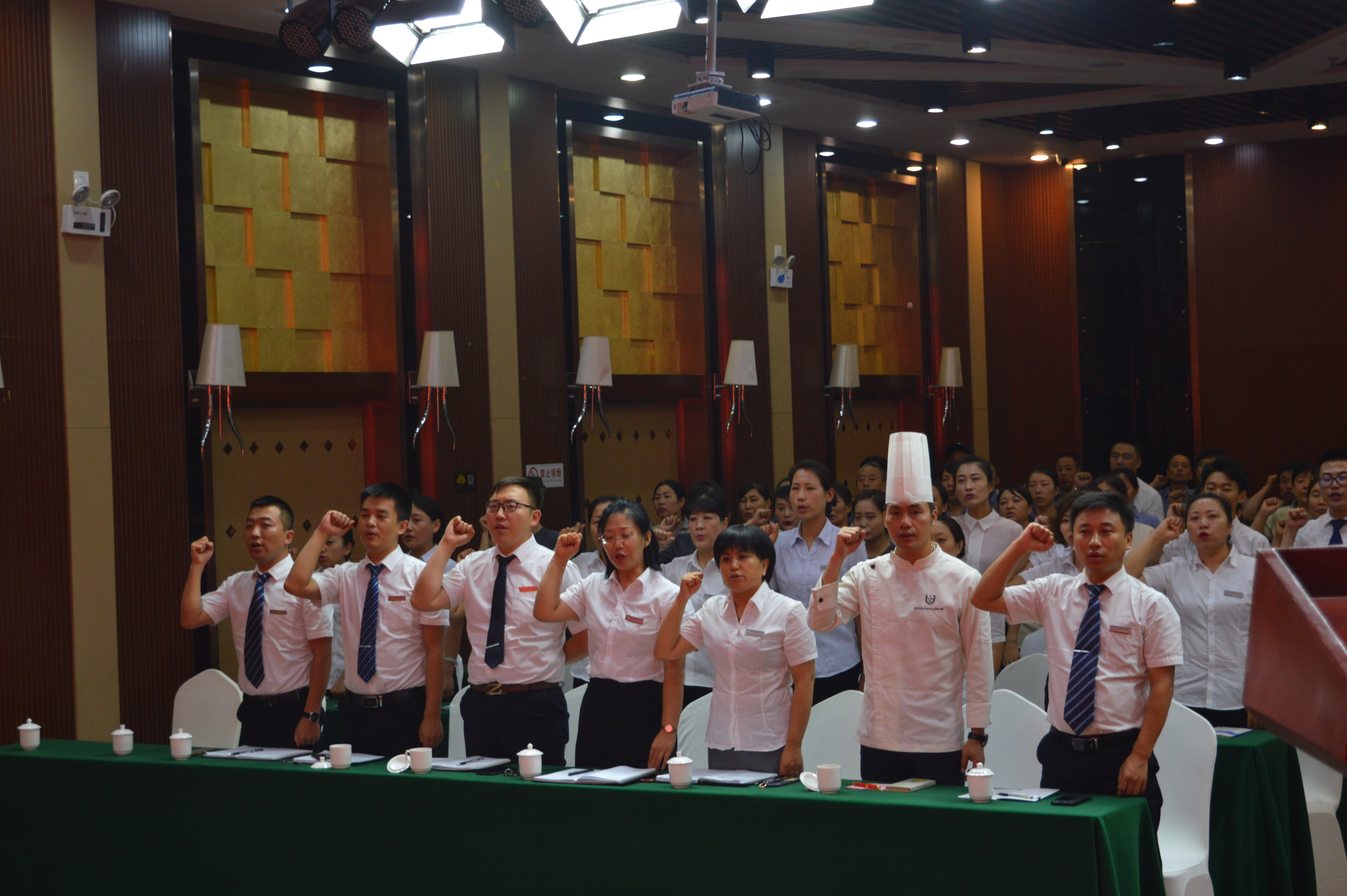 最后,全體人員齊誦星雅名都店訓,大會在整齊劃一、鏗鏘有力的聲浪下圓滿閉幕!同時,星雅酒店服務技能培訓正式起航!