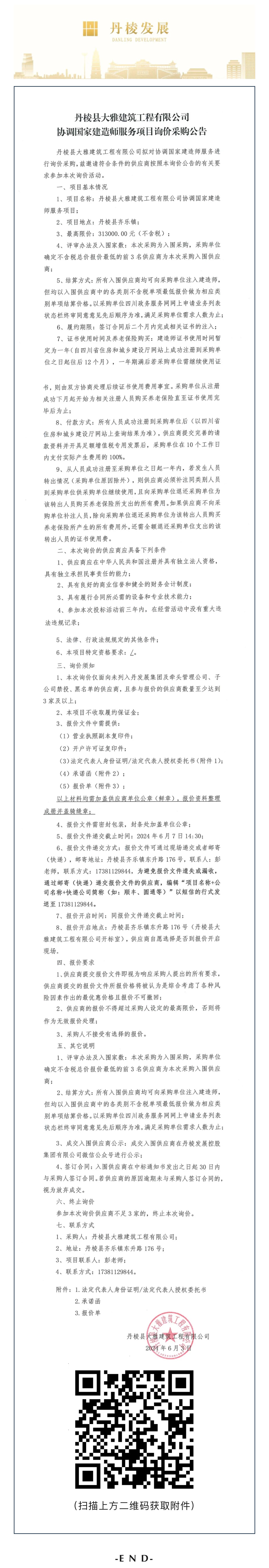 丹棱縣大雅建筑工程有限公司協(xié)調(diào)國(guó)家建造師服務(wù)項(xiàng)目詢價(jià)采購(gòu)公告